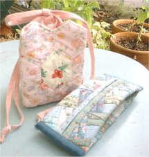 ポーチのキルトトップはどうした!(汗)。 ぺちゃんこポーチは キルトトップを色違いのブルー系で作って仕立てました。 使わないときのことを考えて、わざとマチを縫ってません。 ぺちゃんこになったほうが仕舞っておくのにいいかと。 ピンクの袋物はお子さまポシェットサイズ。 一方的に恋してる小さいおともだちにプレゼントしようと。 可愛い子なんだな、これが。 いまむるさん母娘にプレゼントすること前提の作品です。 お写真はいまむるさんが撮ってくれました。 |