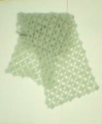![]() ニットのミニマフラー かぎ針で七宝模様のように編んで二重のように仕立てました。 両端にはリング状のふち編みを編みつけて。 (細いモヘア毛糸) 12.11 |